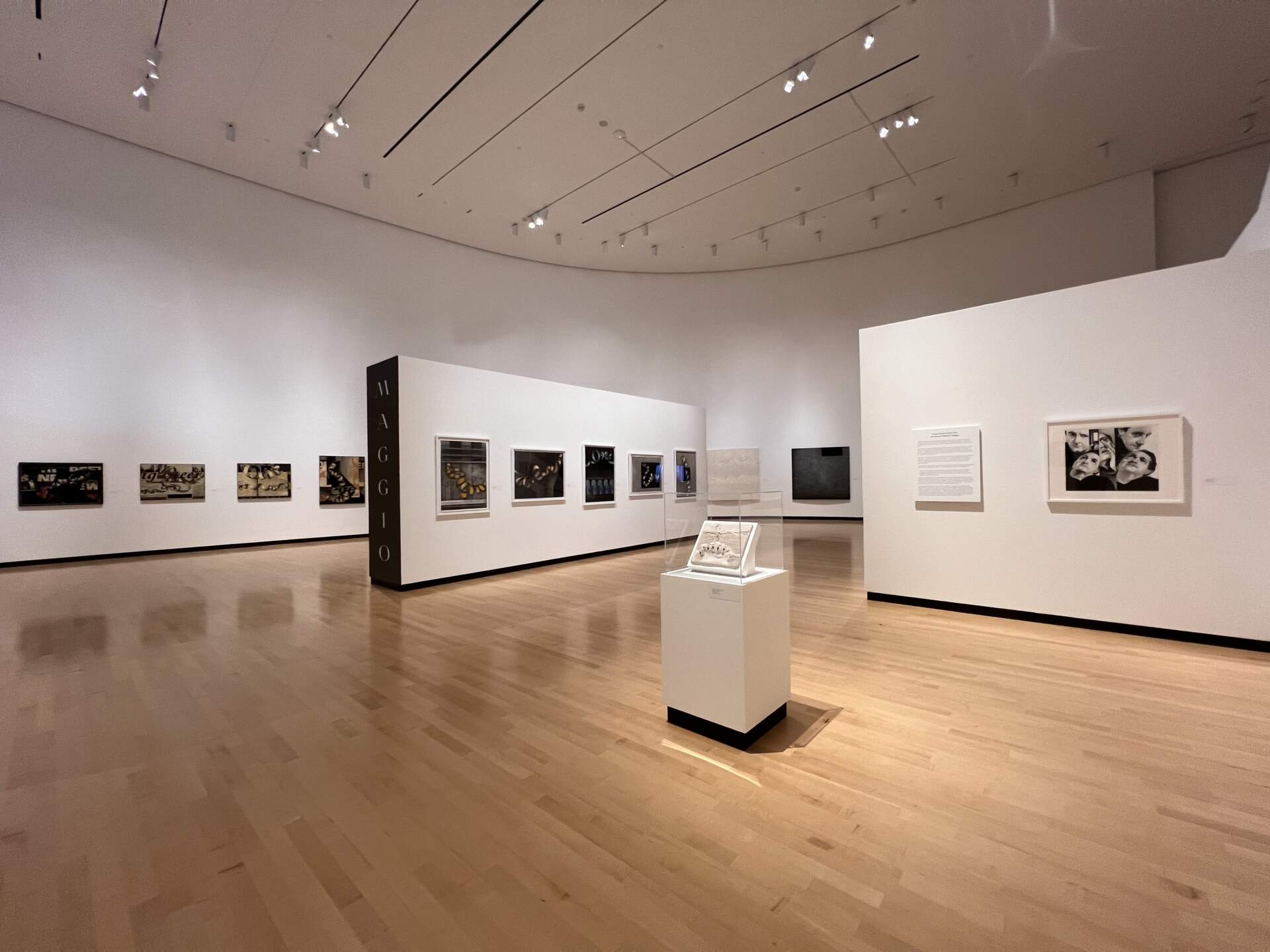This is the first comprehensive exhibition to feature works in all stages of Maggio's career. Early works combine representational themes with the textured facades of buildings, decayed, vandalized and showing the signs of the passage of time. Many works from this period evoke the asphaltum used in the intaglio process to mask the etchers plate before it is submerged in a caustic bath.