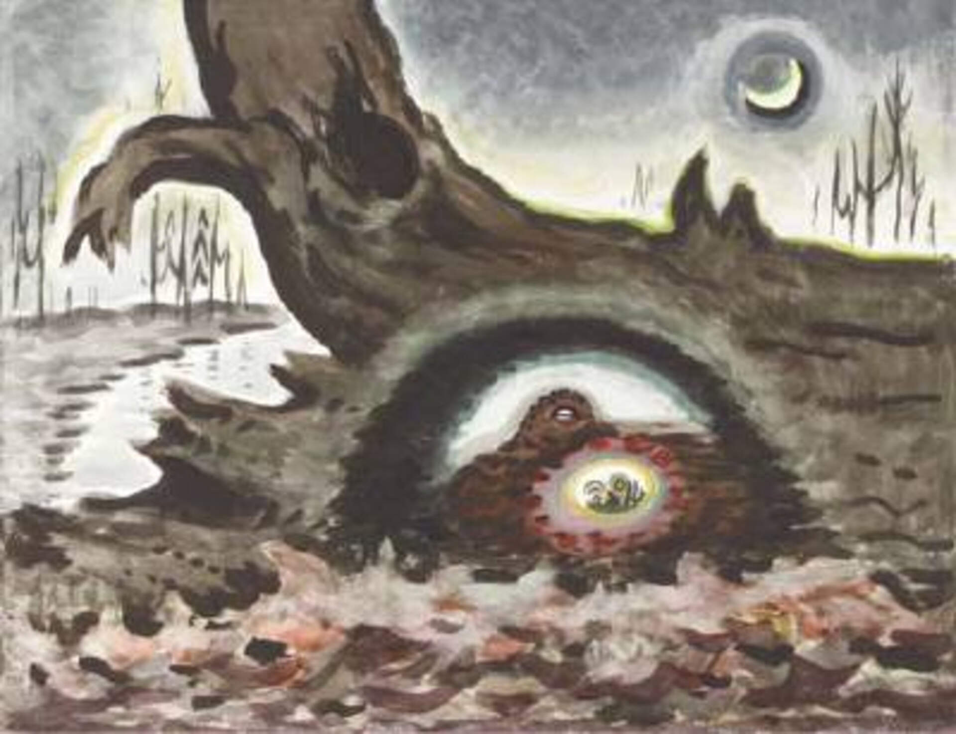 Charles E. Burchfield (1893-1967), Brooding Bird, 1919 (1963), watercolor, 22 ½ x 29 inches, Image courtesy of the Burchfield Penney Art Center, Charles E. Burchfield Archives